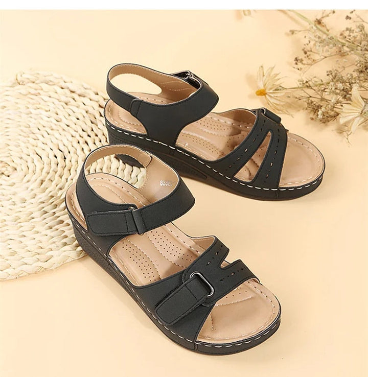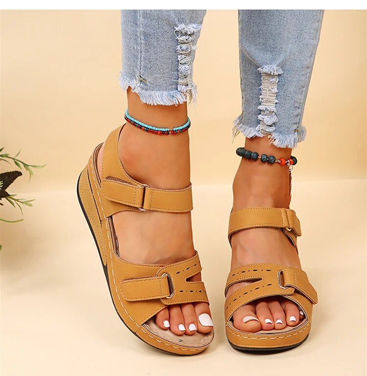 Erleben Sie die ultimative Mischung aus Stil und Komfort mit unseren Mia™ Römersandalen für Damen. Die aus hochwertigem PU-Kunstleder gefertigten Sandalen sind leicht und bieten den ganzen Tag über Gehkomfort, sodass Sie selbstbewusst und stilvoll nach draußen gehen können.