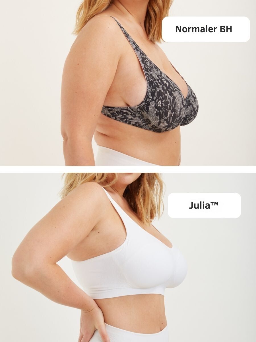Möchten Sie den ganzen Tag lang gut aussehen und schöne, enge Kleidung tragen können, ohne sich wegen Ihres Gewichts unsicher und unwohl zu fühlen? Dann ist der Julia™ Premium Kabelloser Shaper BH die Lösung.